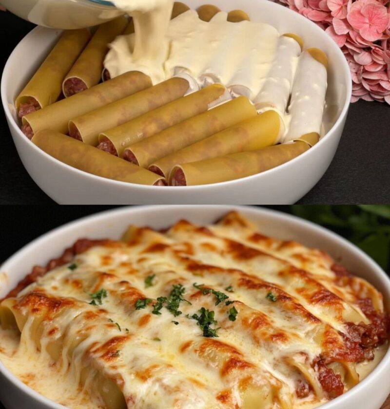 Les cannelloni au bœuf gratinés à la sauce mozzarella incarnent à merveille la cuisine familiale, généreuse et pleine de réconfort. Ce plat aux accents italiens est une véritable ode aux saveurs profondes, à la tendresse de la viande mijotée, à la douceur d’une béchamel fromagère, et au croustillant d’un gratin doré au four.