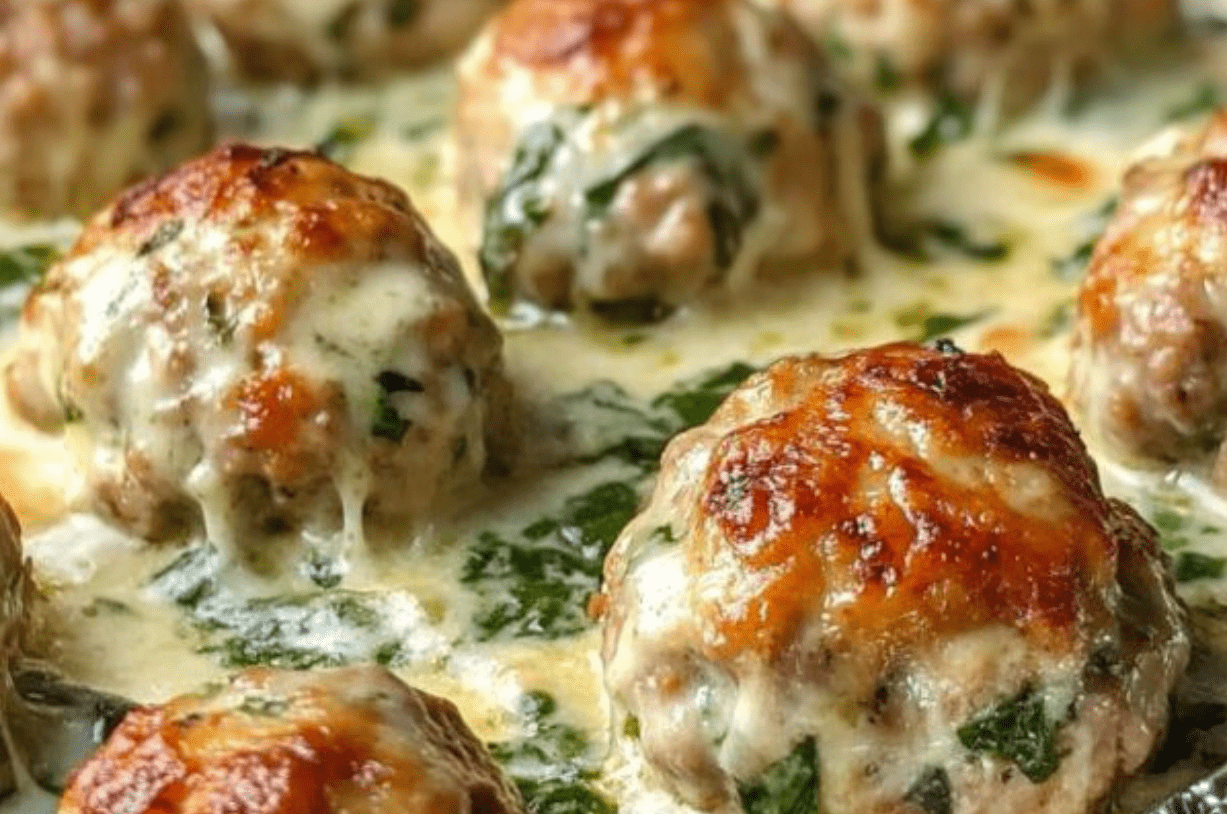 Boulettes de poulet ricotta cuites au four à la manière du Sud avec sauce Alfredo aux épinards