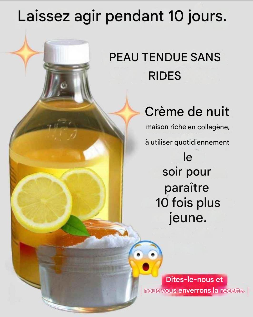 Cette crème de nuit, riche en nutriments essentiels, est composée principalement de miel pur, de bicarbonate de soude et de jus de citron frais. Cette combinaison unique d’ingrédients agit en synergie pour nourrir, exfolier et régénérer votre peau pendant votre sommeil. Une utilisation régulière vous permettra d’obtenir une peau plus lisse, plus éclatante et d’apparence plus jeune, naturellement et à moindre coût.