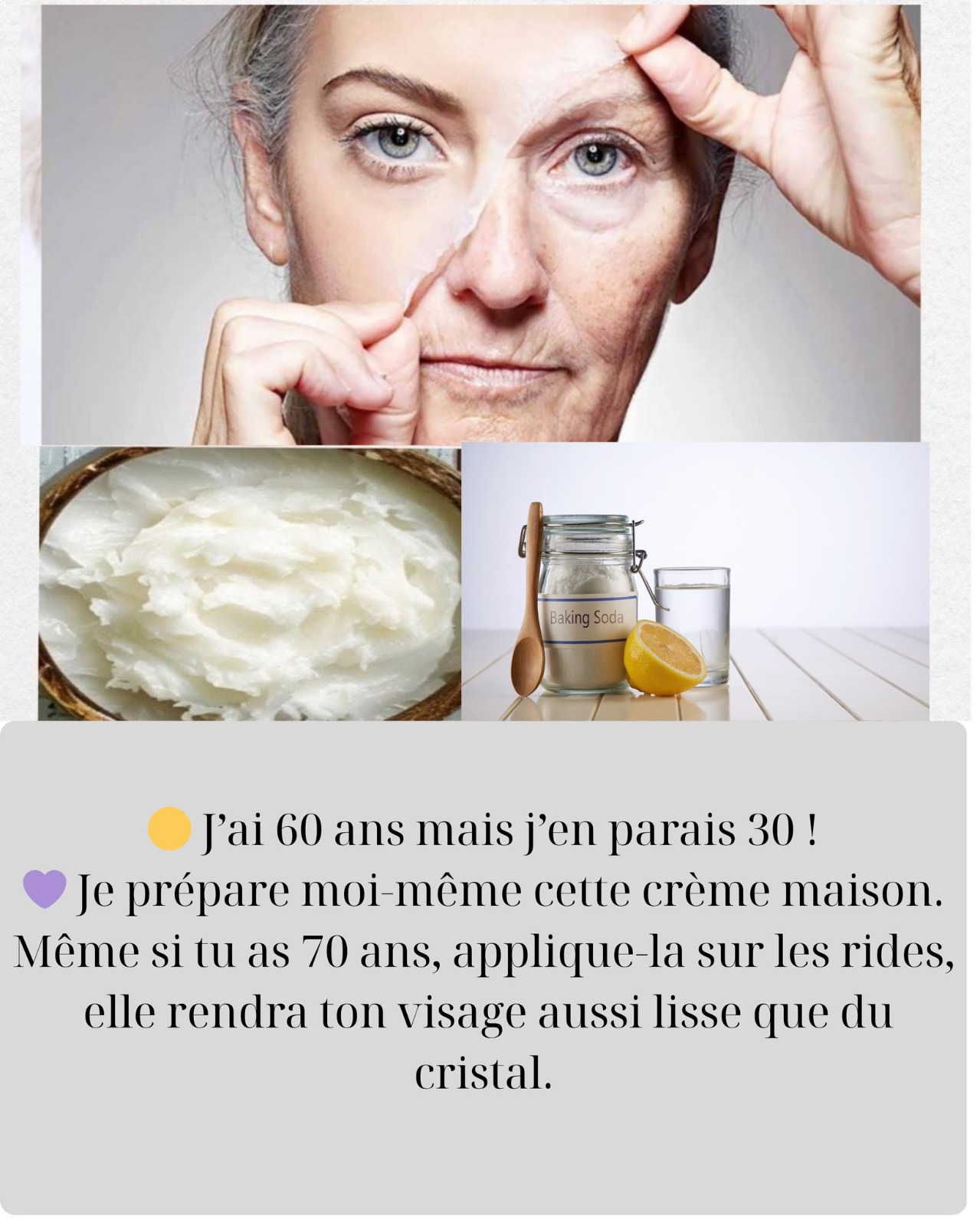 De nombreuses femmes de 60 et 70 ans affirment qu’avec cette crème naturelle à base de bicarbonate de soude, elles ont réussi à réduire leurs rides, atténuer les taches et obtenir une peau plus douce et lumineuse.