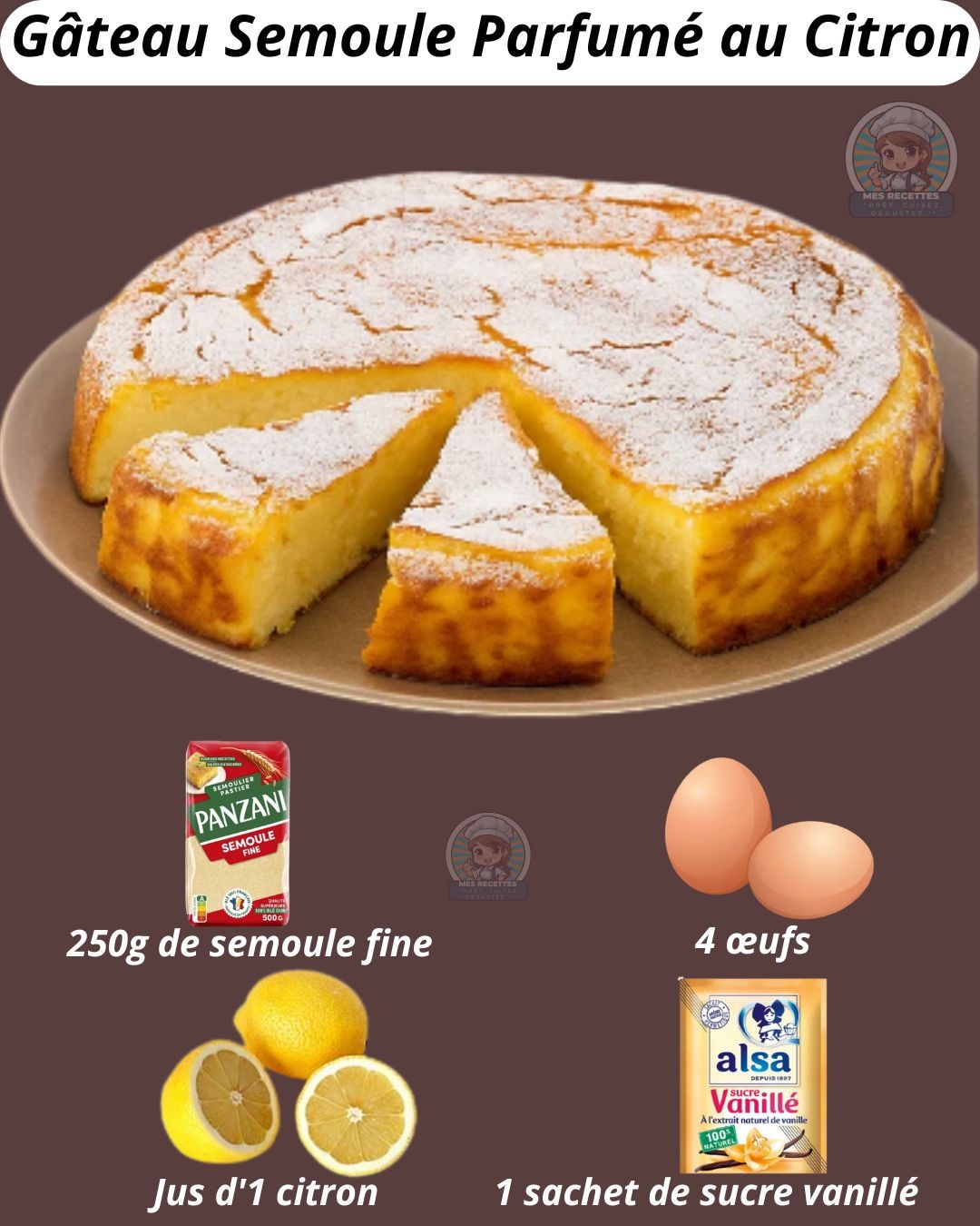 Un gâteau moelleux et léger aux saveurs méditerranéennes, où la semoule apporte une texture unique et le citron une fraîcheur incomparable.