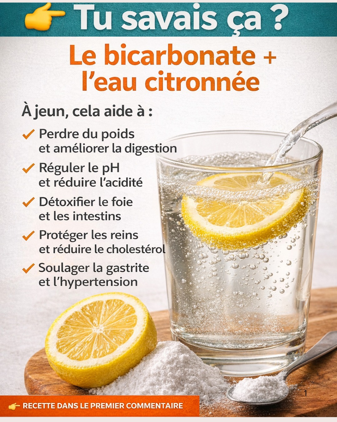 Ce remède maison simple se prépare avec trois ingrédients que vous avez probablement déjà chez vous : de l’eau, du jus de citron et une pincée de bicarbonate de sodium.Alimentation et boissons