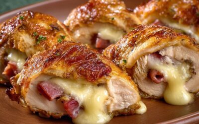 Voici la recette des Rouleaux de Poulet au Jambon et au Fromage