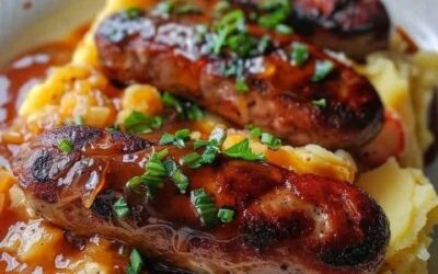 Ingrédients : – 8 saucisses de boeuf – 1 cuillère à soupe d’huile d’olive – 4 grosses pommes de terre,…